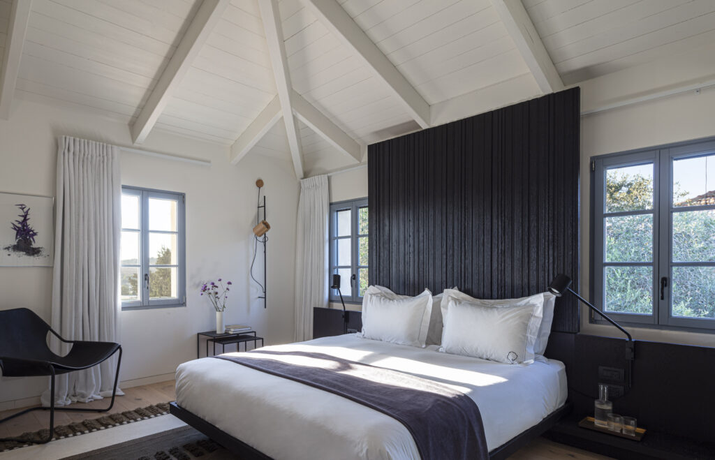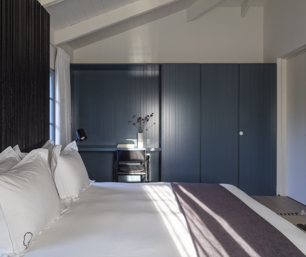חלל שקט בקומה השנייה של המבנה הראשי, המשקיף אל החצר האחורית ואל המראות המרהיבים של בוסתן היין והנופים הטבעיים סביב ה- Farmhouse.